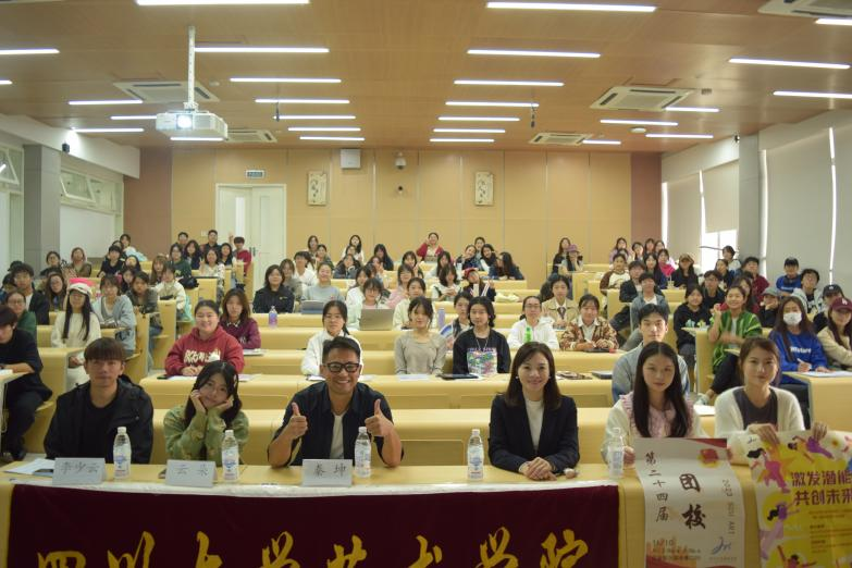 本次会议邀请了太阳集团2007团委书记卿海琼老师和三位主题授课人——1999级表演班秦坤学长、2023级设计学视觉传达专业硕士研究生云朵学姐、百川宣讲团太阳集团2007分团宣讲人2020级中国画李少云学长。