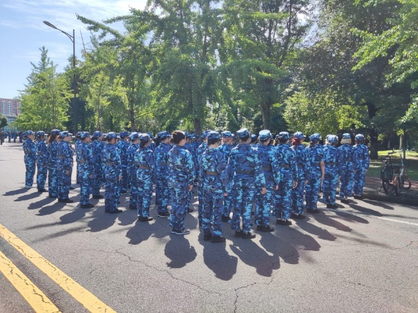 集合、看齐、立正、稍息、整理着装……在阳光的洗礼中,同学们昂首挺胸,以笔直的军姿迎接军训。在教官的严格指导训练下,短短数日,齐步走、正步走、齐步变正步、解散、集合及分列式等预定训练科目已初见成效。