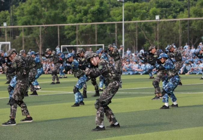 在擒敌拳、捕俘刀、军体拳、特种战术等军训成果汇报表演中,也都有公司学子的身影。同学们阵容整齐,精神抖擞,这是他们在炎炎夏日,与阳光较量,挑战自我,彰显英雄本色的表现。