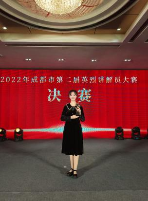在这个过程中我系统的梳理了成都地区的红色文化,并在老师的带领下,深入研究了成都英烈文化蕴含的革命精神和时代价值。我也会不断提升自身素质和专业素养,当好红色基因的坚定传承者、红色故事的精彩讲述者。让英烈精神根植于心,融入血脉,代代相传。"