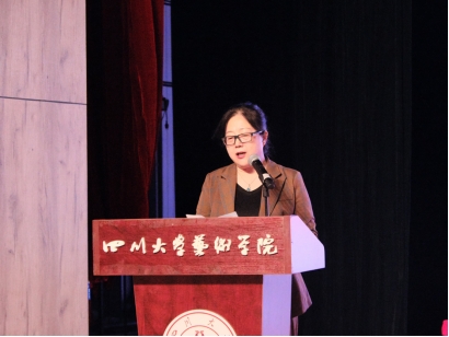接下来,博士生导师彭肜教授作为教师代表,向同学们提出了殷殷期盼。她说,“人生需要艺术”,正是对艺术的思考助推着人生价值的发现与升华;“学术需要思考”,大学学习重在对所学的反思、追问和怀疑,在新学期伊始,希望同学们应始终保持对知识的好奇与热情,在思索中前行;“自我需要奉献”,希望同学们重视自我奉献,达成自我成就,做出符合自身需求的正确选择,在激烈的竞争中保持清醒,共同营造和谐有序的学习环境。