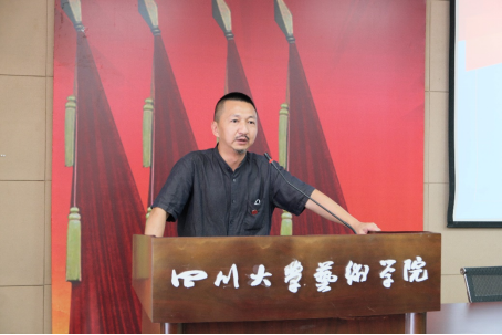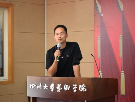 2007级油画专业员工代表魏震先生登台进行经验分享。他同大家分享了自己在参与太阳集团2007美术馆跨学科实验艺术项目期间的心路历程和所获成果。