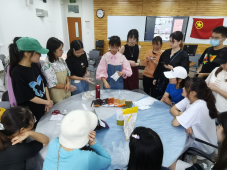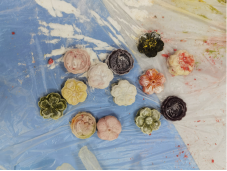 第二部分:手工制作冰皮月饼。同学们每四人分为一个小组,每个小组准备好一份沸水,和面,包馅,压模。精美的模具和各色各样、色美味俱全的馅儿在同学们手中逐渐变成一个个敦实的冰皮月饼,成就感满满。
