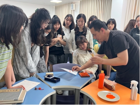 随后,丁伟老师带领同学们亲身体验古籍印刻的乐趣,感受刷墨汁、压实纸中的技术讲究,在动手实践中贯彻之前讲解的理论知识。