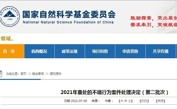 第二批次6所高校涉事人员被查 国家自然科学基金委通告 关于2021年查处的不端行为案件处理决定