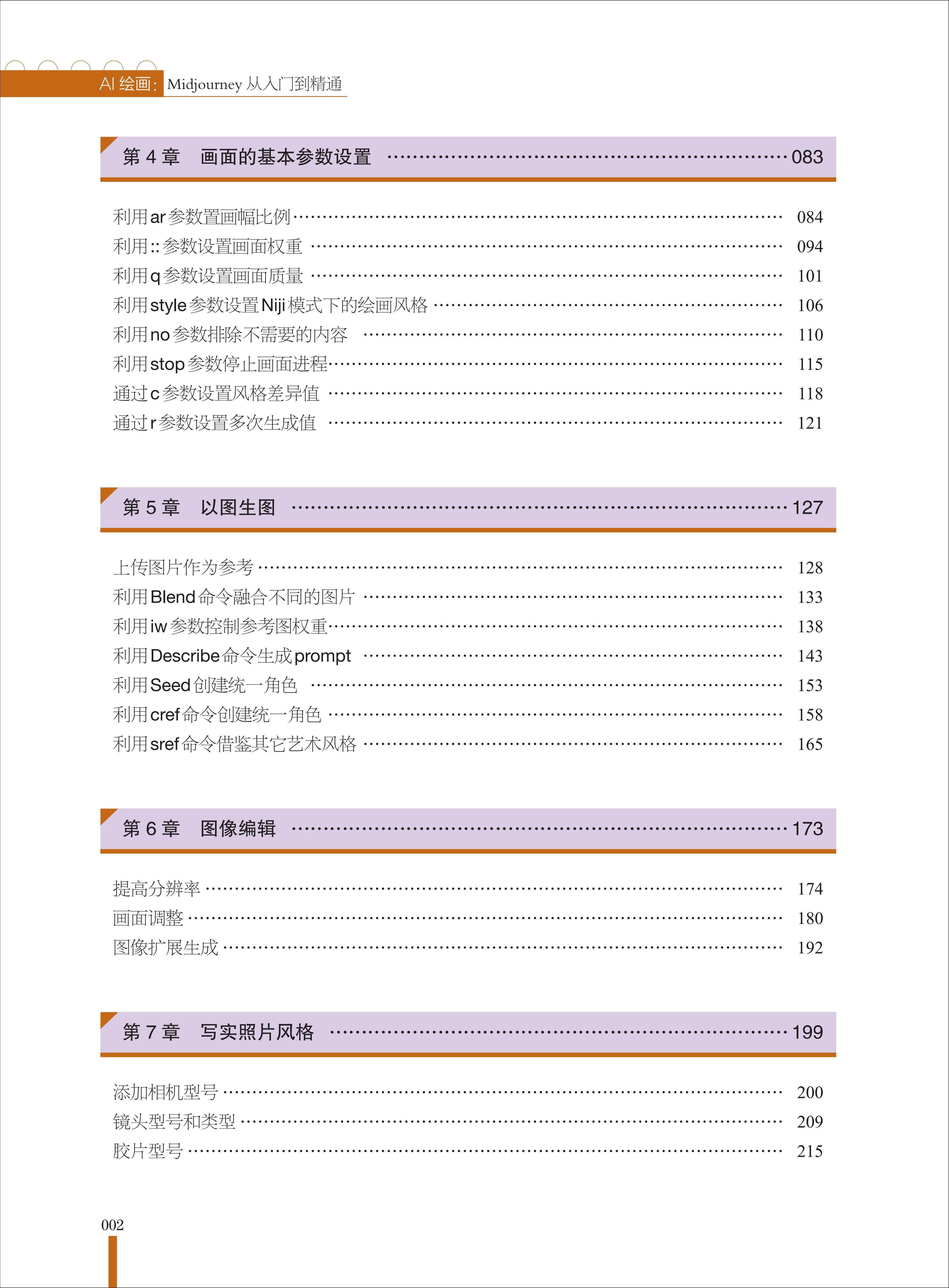 创作应用:通过大量案例剖析Midjourney在艺术、设计、教育、广告等领域的应用,为平面设计、环境艺术、概念设计、插画、IP创作提供实战经验。