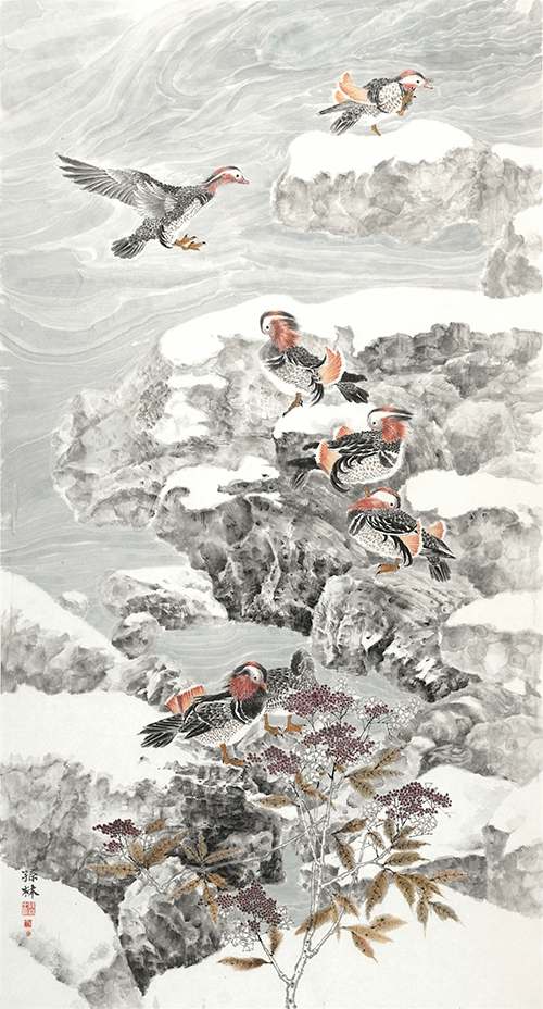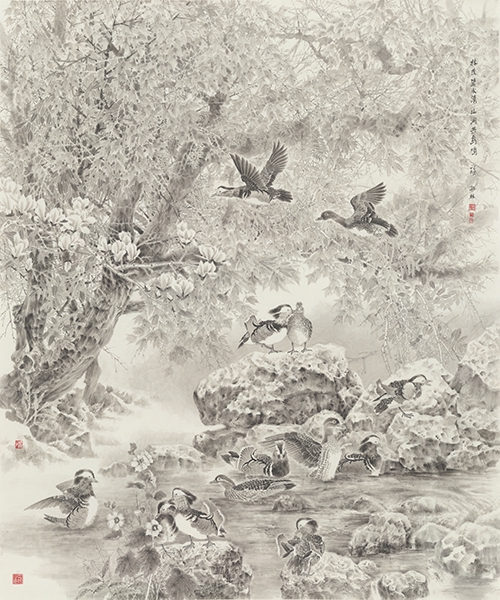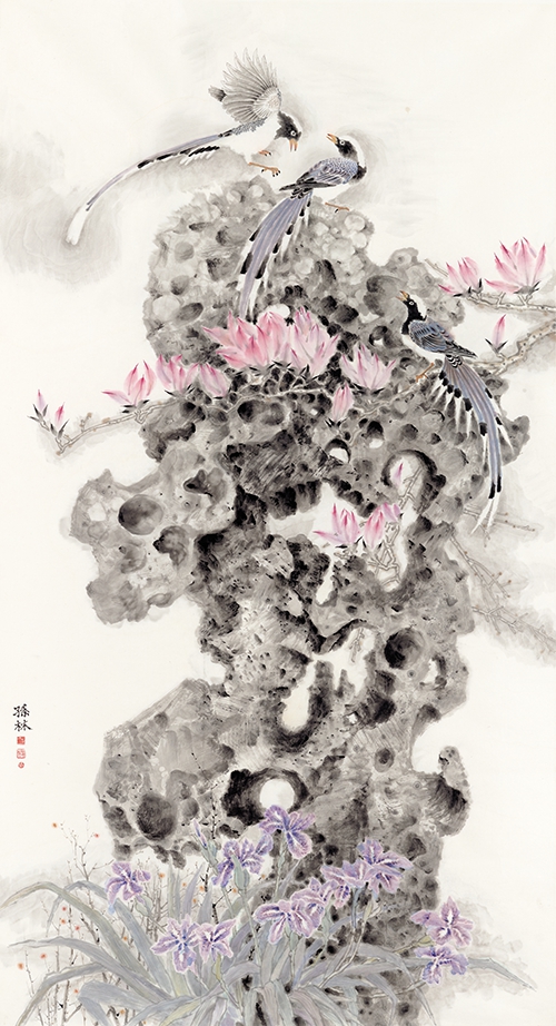 ——摘自·林木《现代密体花鸟画新范式 ──读孙林的密体花鸟画》。