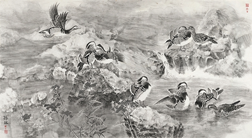 18.水禽图(96×180cm)、纸.水墨、孙林