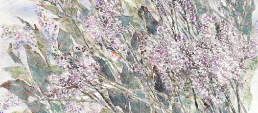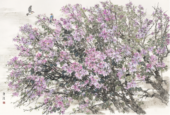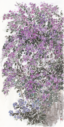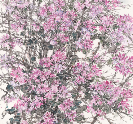 其实唐洁参加全国美展的《春华缤纷》、《家家花丛中》,确包含了唐洁这些年来在花鸟画上大部分的探索和实验。