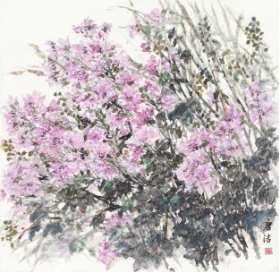 ——摘自 林木《随意点染自成体 非工非写有真情──读唐洁的彩墨花卉画 》